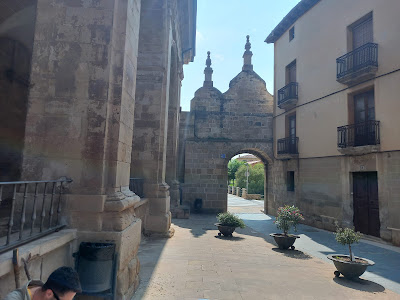Et aujourd'hui, je suis arrivé très tôt après mon petit-déjeuner, à 7h15, sur le chemin de Saint-Jacques. Je voulais profiter de la matinée, car il y avait plus de 35 km jusqu'à ma destination, Los Arcos. En passant par Lorca et Vllatuerta, je suis arrivé à Estella-Lizarra, une ville importante dans le passé. De nombreux bâtiments imposants témoignent de sa grande importance. L'Iglesia del Santo Sepulcro, un immense bâtiment qui ne sert plus d'église depuis plus de cent ans. L'église San Pedro de la Rua très imposante au-dessus de la ville.